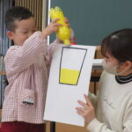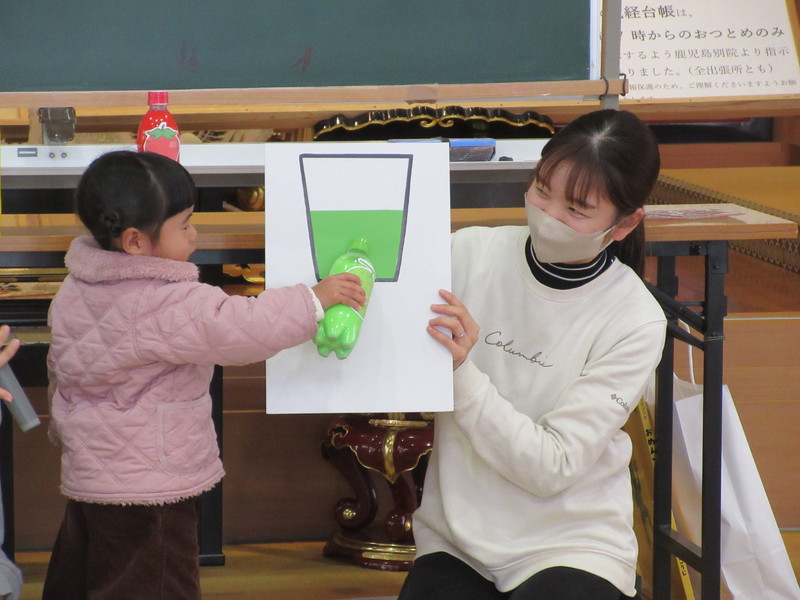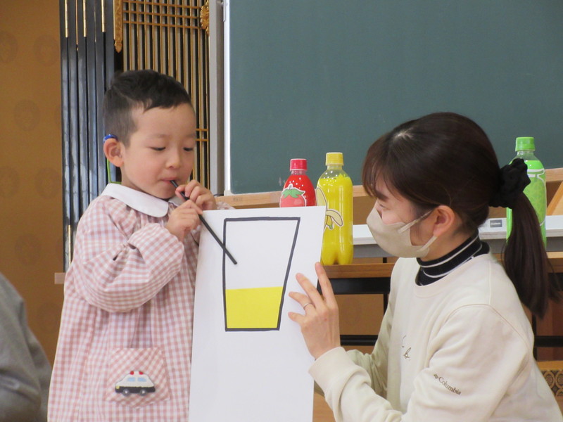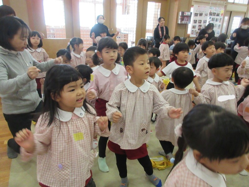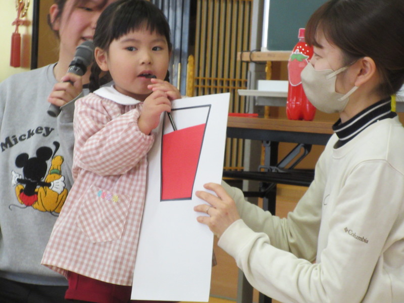 わくわくタイムでは、歌遊び「おでん」、大型絵本「おめんです」、リズム体操「さくらんぼのマンボ」、マジックシアター「魔法のジュース屋さん」を楽しみました。
